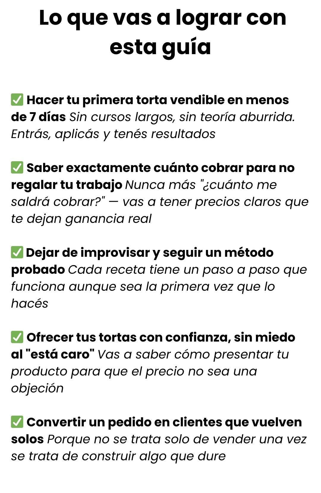 - 💬 Si en esos 7 días sentís que las recetas no te salen, que el paso a paso no es claro, o que esta guía no te acerca a la idea de vender desde tu cocina, me escribís y te devuelvo el 100% de tu dinero.